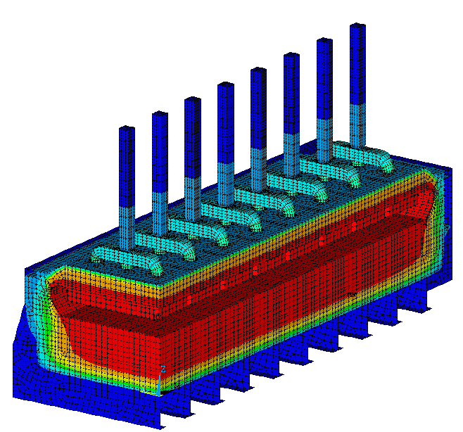 Once reliable heat balance data are available, it is relatively straightforward for an experienced modeler to calibrate the ANSYS-based mathematical models in order for them to well reproduce the measured behavior because those models are quite closely representing the physics and the geometry of the real problem. On the other hand, because Dyna/Marc models are based on major simplifications of the geometry of the problem, it is harder to calibrate them well. The most accurate and the most straightforward way to well calibrate a Dyna/Marc model is to use information obtained from a validated ANSYS-based 3D model.