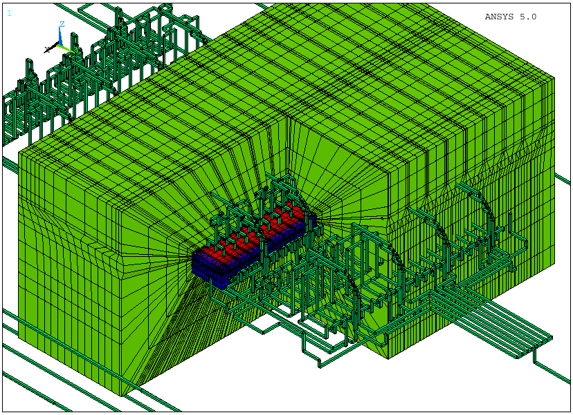 The personal involvement of the author started early in the aluminum industry conversion phase where it shifted from developing in-house finite difference models toward developing finite element models based on commercial codes like ANSYS (Reference 1). In 1984, he was assigned to the development of a 3D thermo-electric half anode ANSYS model (References 1, 2 and 3, see figure 1). That model was developed on ANSYS 4.1 installed on a shaded VAX 780 platform. That VAX was running a wide variety of applications as it was the only general purpose computer used by an R&D organization of around 500 peoples. A Tektronix 4107 terminal was used to work on the VAX via a long distance dedicated telephone line as that VAX was physically located in another city.