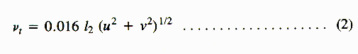La valeur de la constante "l1" est déterminée par comparaison avec les résultats expérimentaux et peut varier fortement d'un écoulement à l'autre. Même si ce modèle a eu beaucoup de succès pour des simulations de couche limite près des parois ou des jets libres, il pose des difficultés pour les écoulements avec recirculation où les gradients de vitesse peuvent atteindre une valeur nulle. Pour cette raison, ce modèle n'a pas été utilisé. Une autre équation algébrique est basée sur les vitesses de l'écoulement: