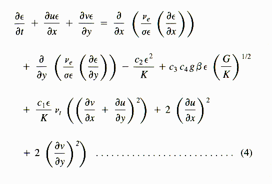 Étant donné que le présent écoulement est laminaire près des parois et turbulent au-dessus des cuves, le modèle K-e-G modifié pour l'écoulement à nombre de Reynolds faible a été adopté (Plumb et Kennedy, 1977); il comprend les équations suivantes: Énergie cinétique turbulente K: