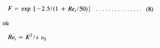 La fonction F tient compte de la diminution de la viscosité turbulente près des parois.