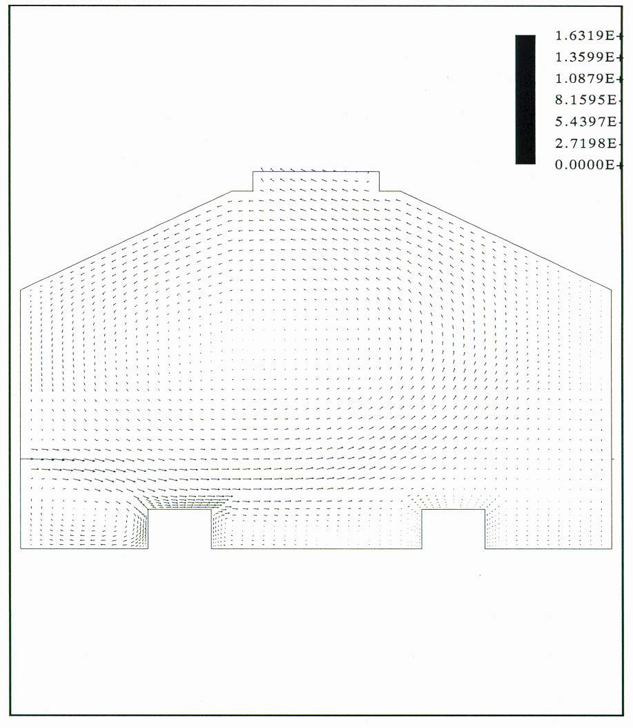 The results of the present test cases indicated that the Reynolds flux turbulence model gave a better simulation of the thermal plumes due to natural convection than the K-E turbulence model. Both the flow pattern and the temperature profile of the plume were better simulated by the Reynolds flux model However, the Reynolds flux model makes incorrect predictions of the air temperature near the floor The zone near the floor is the work area of cell operators and it is in this zone where the estimation of the working conditions would be inaccurate. Similar incorrect predictions were encountered when a coarse mesh was used around the cell model. In that case the air temperature directly above the cell was less than the air inlet temperature.