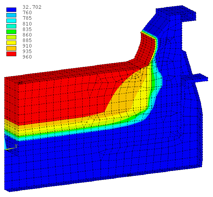 Les modèles thermiques ou plus précisément les modèles thermo-électriques sont utilisés pour optimiser à la fois la conception thermique et électrique d´une cuve d´électrolyse, ces deux éléments étant indissociables de par la nature même du problème. En effet, la conception thermique affecte le comportement électrique de la cuve par le biais de la variation des propriétés électriques des matériaux en fonction de la température. Dans certains types de design, la position du pied de la gelée sur le bloc cathodique influence aussi le comportement électrique de façon marquée. D´autre part, la conception électrique affecte le comportement thermique par le biais de la génération de chaleur dans le revêtement de la cuve par l´effet Joule.