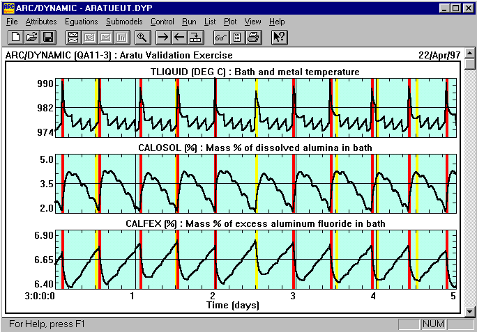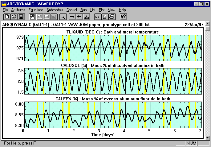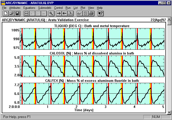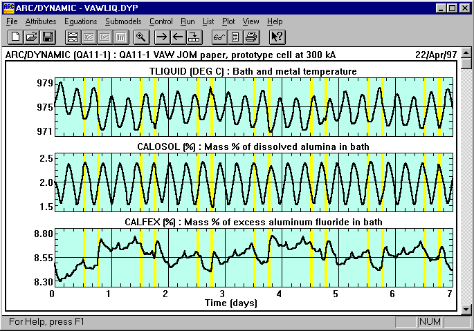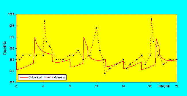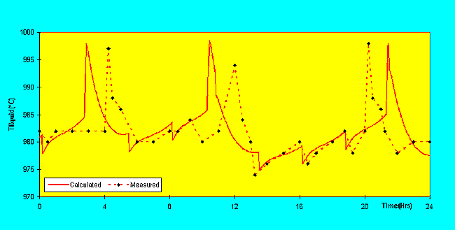 Le modèle dynamique ARC/DYNAMIC a été utilisé pour tenter de reproduire le comportement dynamique observé en usine. Le modèle peut utiliser à la discrétion de l´utilisateur soit la surchauffe liquidus soit la surchauffe eutectique. Les résultats présentés à la figure 2 ont été calculés en sélectionnant la surchauffe liquidus.