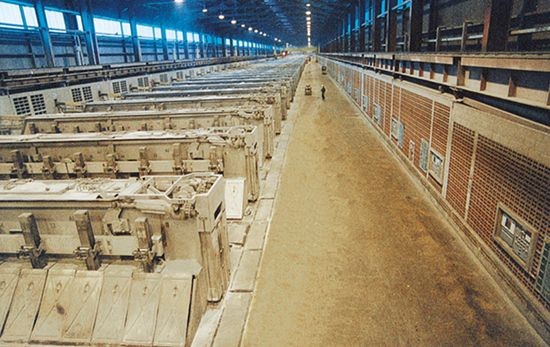 Modern smelter buildings are more than 25 m wide, around 15 m high (excluding the basement) and can be up to 1 km long (see Figure 2). Such a building can shelter up to 100 pots aligned side by side, each being close to 14 m long and 4 m wide.