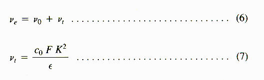 La valeur de la constante "l1" est déterminée par comparaison avec les résultats expérimentaux et peut varier fortement d'un écoulement à l'autre. Même si ce modèle a eu beaucoup de succès pour des simulations de couche limite près des parois ou des jets libres, il pose des difficultés pour les écoulements avec recirculation où les gradients de vitesse peuvent atteindre une valeur nulle. Pour cette raison, ce modèle n'a pas été utilisé. Une autre équation algébrique est basée sur les vitesses de l'écoulement: