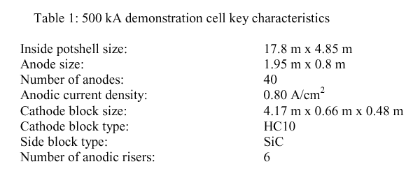 500 kA CELL DEMONSTRATION TEST CASE