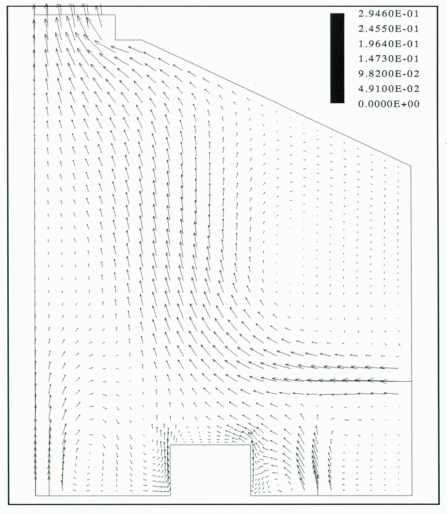 The results of the present test cases indicated that the Reynolds flux turbulence model gave a better simulation of the thermal plumes due to natural convection than the K-E turbulence model. Both the flow pattern and the temperature profile of the plume were better simulated by the Reynolds flux model However, the Reynolds flux model makes incorrect predictions of the air temperature near the floor The zone near the floor is the work area of cell operators and it is in this zone where the estimation of the working conditions would be inaccurate. Similar incorrect predictions were encountered when a coarse mesh was used around the cell model. In that case the air temperature directly above the cell was less than the air inlet temperature.